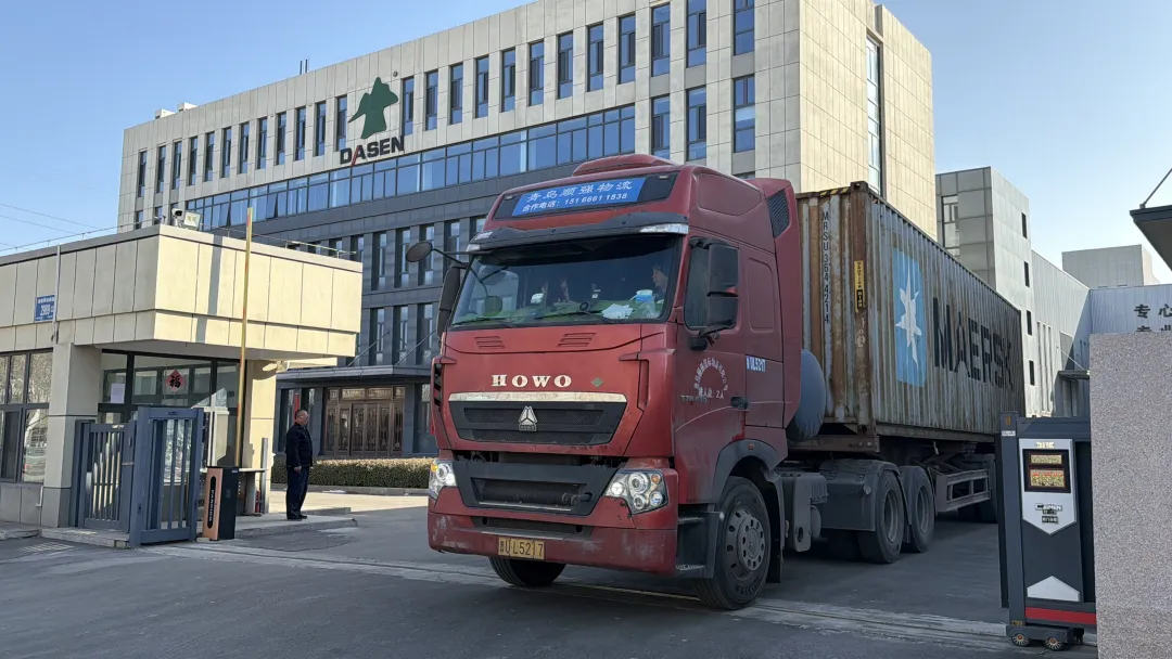 十輛滿載著大森速凍設(shè)備的集裝箱半掛車陸續(xù)裝箱駛離廠區(qū),向著青島港出發(fā),開啟跨國履約之旅。