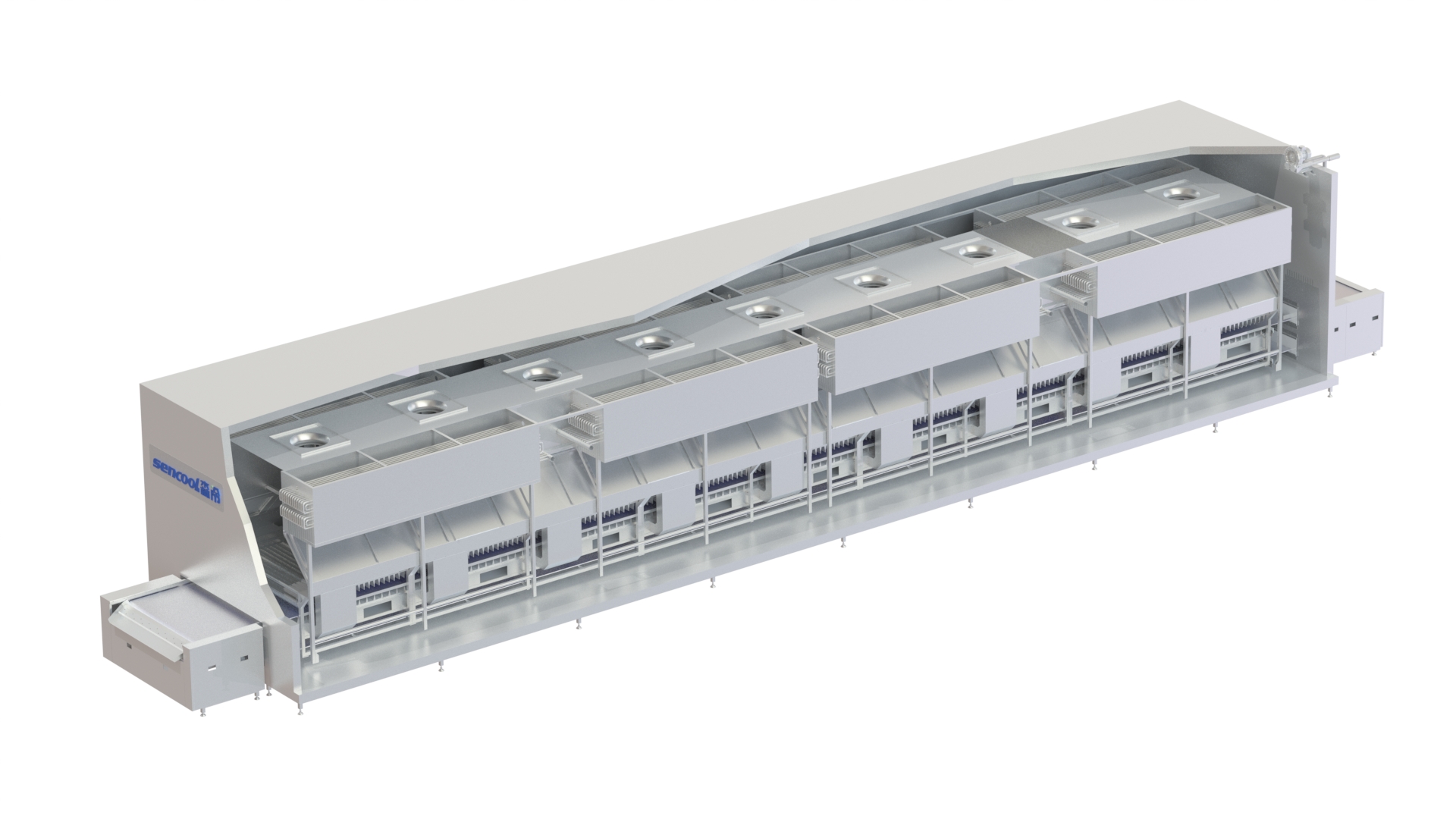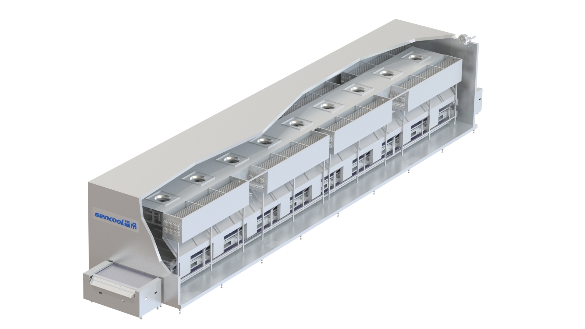 大森高效對撞板帶速凍機特點: