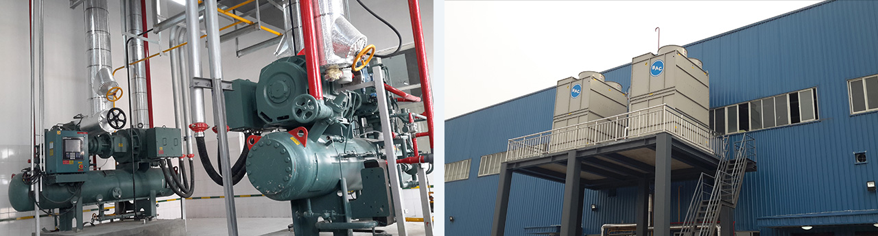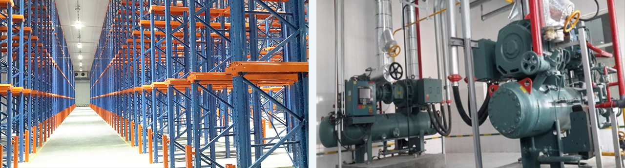 一座單層鋼結構冷庫。本項目為固定貨架裝配式冷庫,采用封閉式降溫穿堂(3±2°C)。1號、2號冷庫庫溫-18°C~-22°C,存儲6014噸。3號冷庫庫溫5°C,容量為229噸。降溫穿堂溫度為3±2°C。采用氨(R717)制冷系統,末端吊頂式冷風機,手指令自動熱氨融霜。