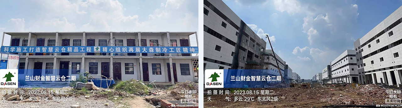 1#2#3#4#四座三層土建冷庫。總容積423176m3(約43萬),總存儲噸位約73039噸(七萬三千噸)冷凍庫采用氟利昂(R507)桶泵供液制冷系統:穿堂采用氟利昂(R507)直接膨脹供液系統。末端采用冷風機,冷藏間采用熱氣融霜;冷凍間采用手指令自動熱氣融霜十人工掃霜。穿堂采用自然融霜。